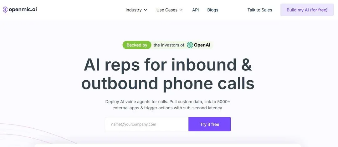 Start your free trial and see how OpenMic’s AI voice agents can streamline calls, boost conversions, and deliver fast, 24/7 customer service — without hiring more staff.